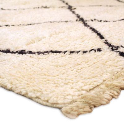 1. Tapis BENI OUARAIN 12093 Laine Fait Main (environ 310x185cm) Écru