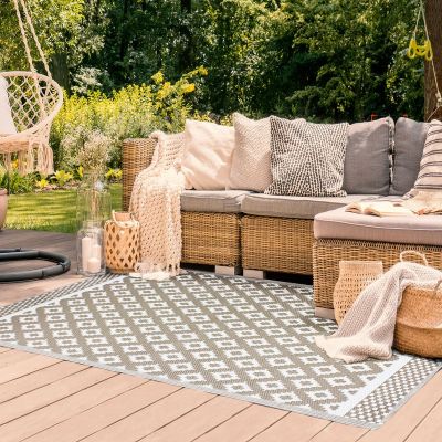 4. NATOU Tapis d'extérieur motifs géométriques gris 120x180
