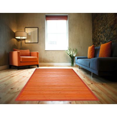 Tapis en bambou larges lattes et ganse orange 230x160cm SOLO BAMBOO