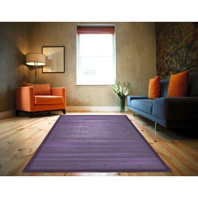 Tapis en bambou larges lattes et ganse violet 230x160cm SOLO BAMBOO