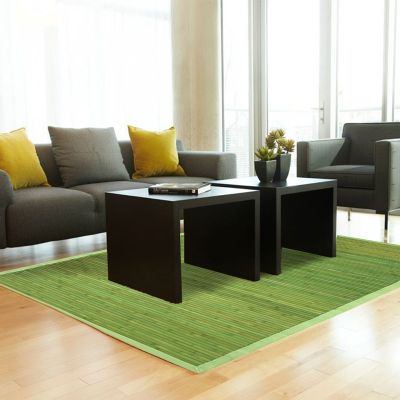 Tapis en bambou larges lattes et ganse vert 230x160cm SOLO BAMBOO