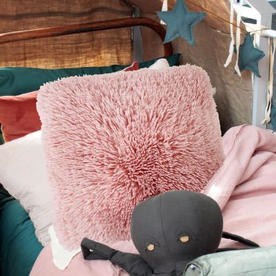 Coussin à poils longs extra-doux rose 60x60