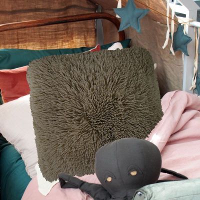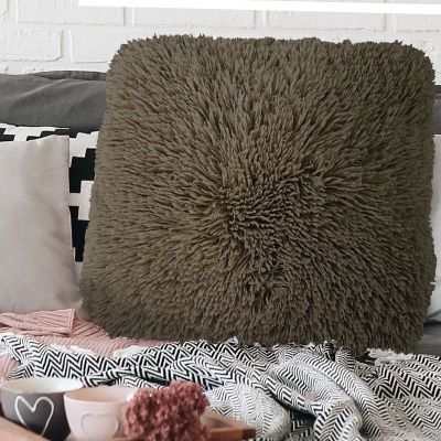 Coussin à poils longs extra-doux taupe 60x60
